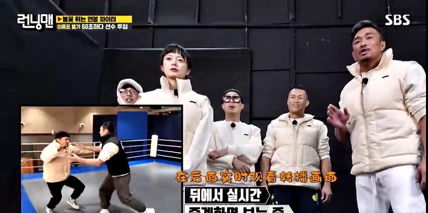 好不容易坚持了一分钟,金钟国这面的宋智孝也出场了。而刘在石一方上场的则是全昭旻。